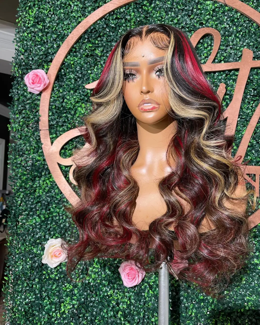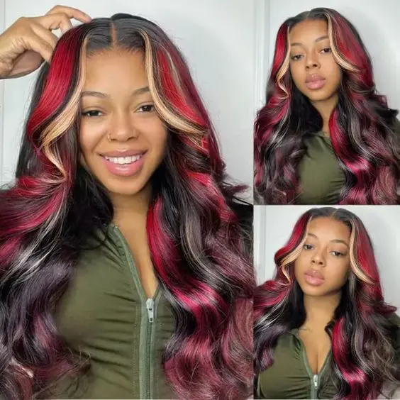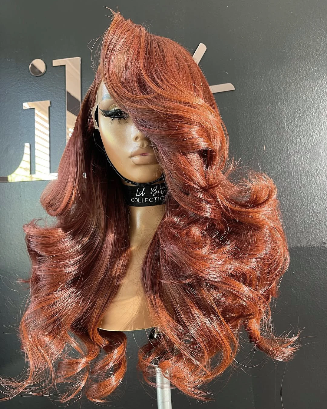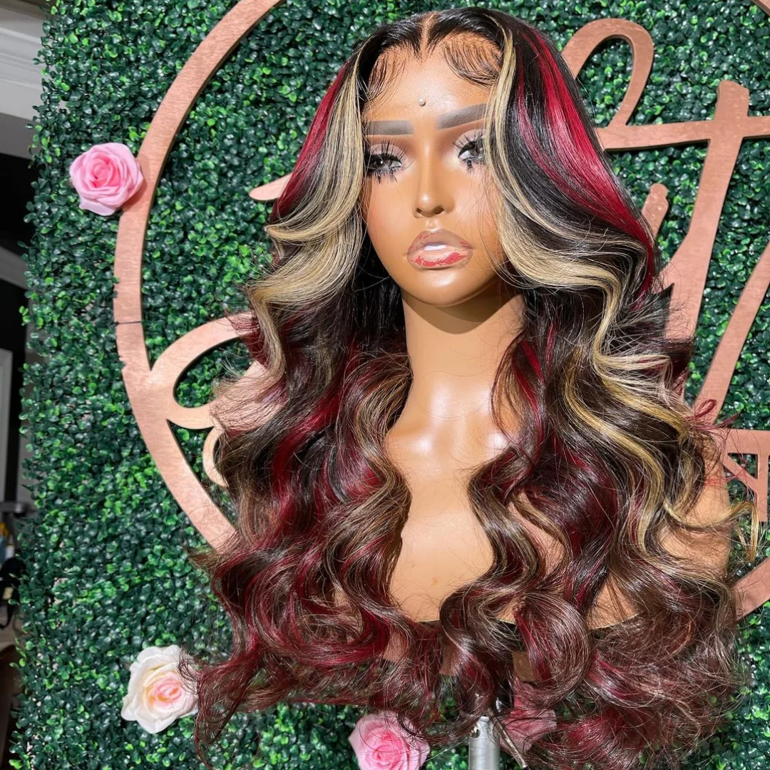 Reddish Brown Wigs For Women Body Wave 13X4 Lace Front Wigs Synthetic Omber Red Lace Frontal Wig Pre Plucked With Baby Hair Wig