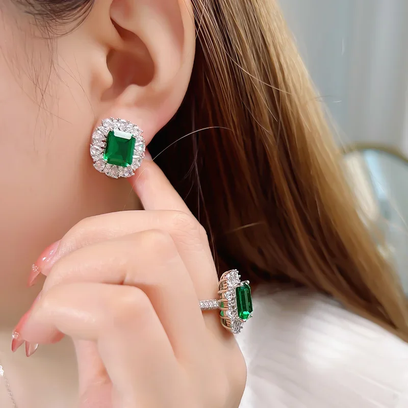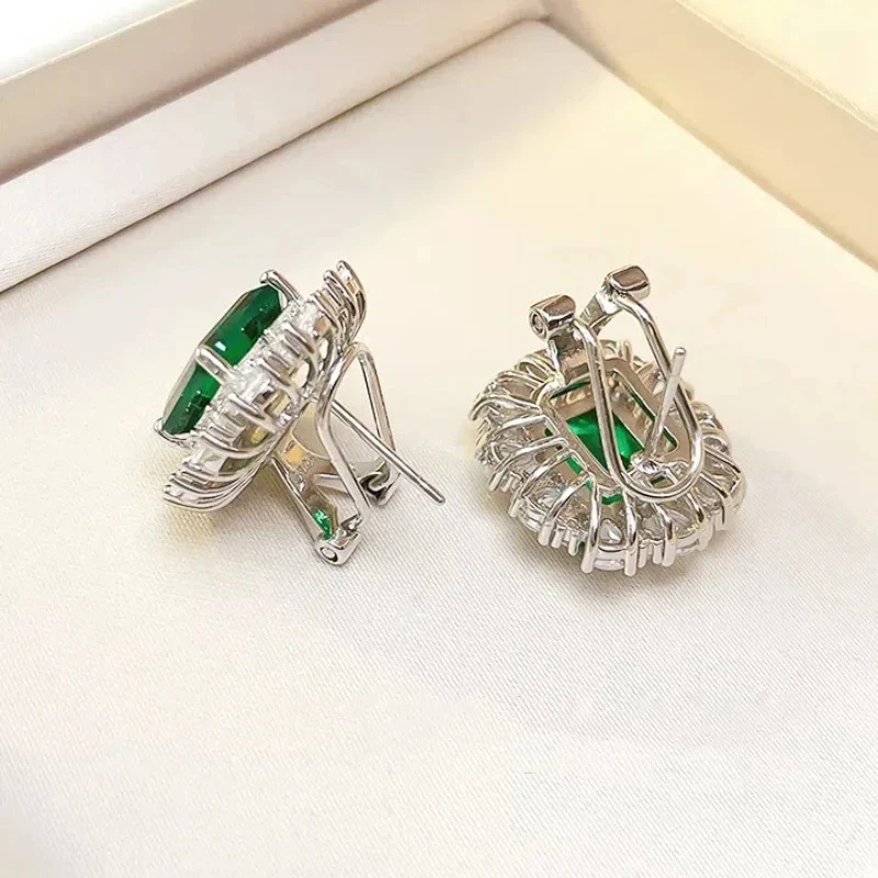 Halaile 9*11MM Emerald High Carbon Diamond Earrings S925 Sterling Silver Zircon Fine Jewelry Trendy Elegant Gift for Women