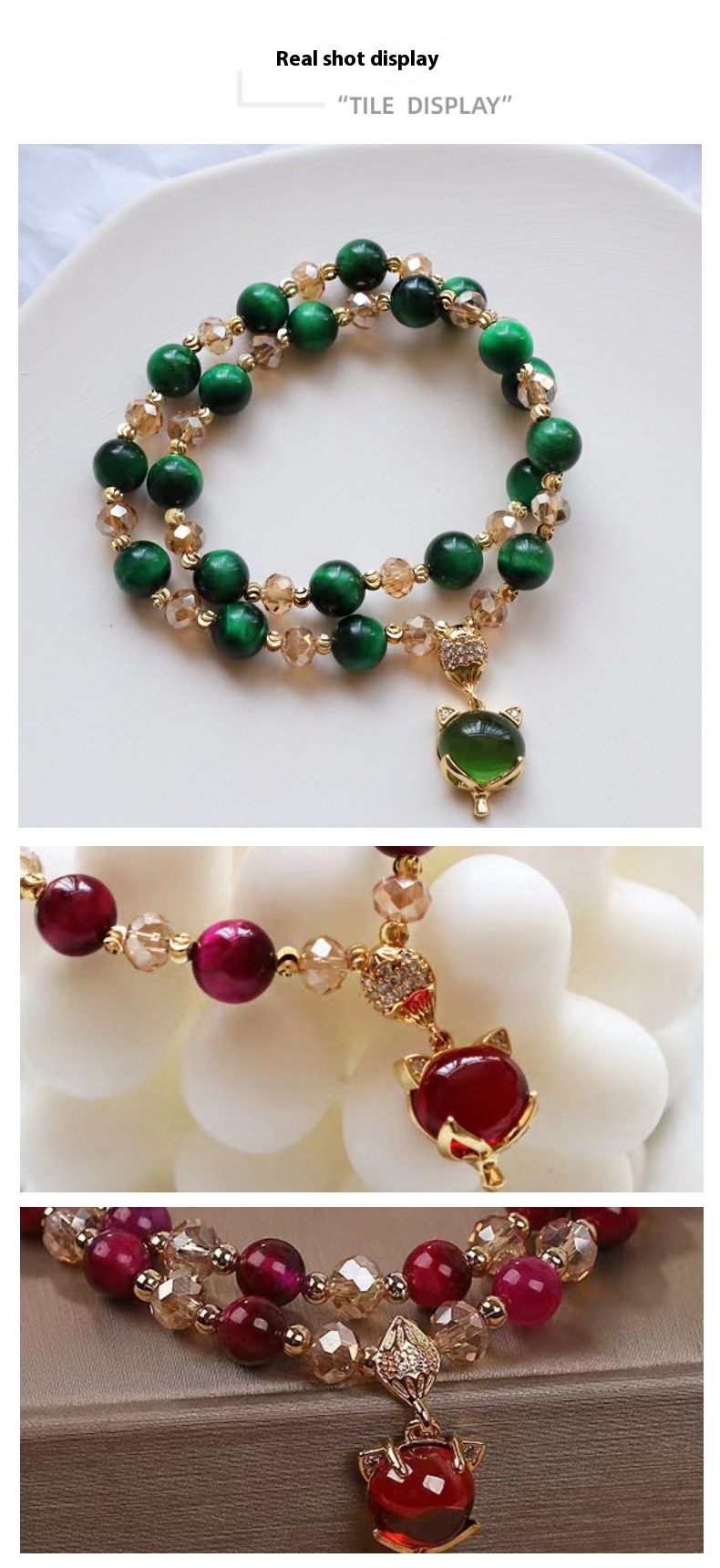 Style: double chain rose Red Fox bracelet, double chain Green Fox bracelet, double chain rose red leather show bracelet, double chain green leather show bracelet, single chain rose red leather show bracelet, single chain green leather show bracelet, single chain rose Red Fox bracelet