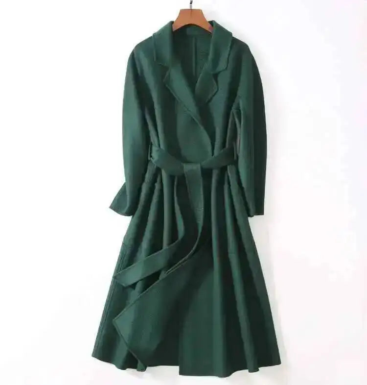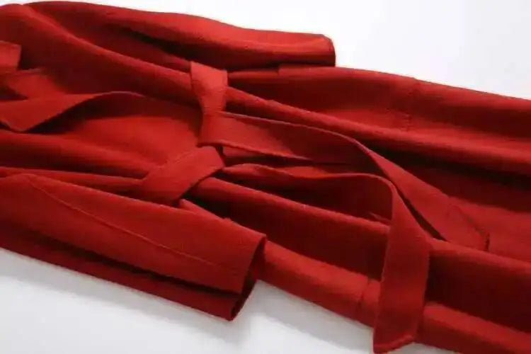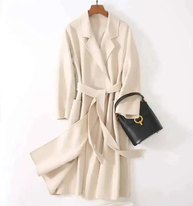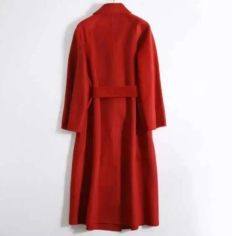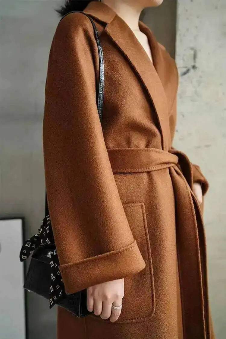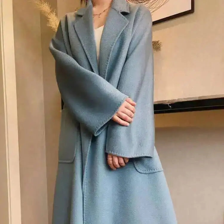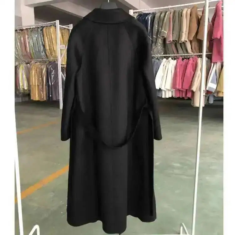 Experience unparalleled luxury with the LANMREM 2025 High-End Water Ripple Wool Coat. This is not just an overcoat; it's a statement piece, crafted from superior double-sided wool (often hand-sewn for a flawless finish), designed for the modern, elegant woman.