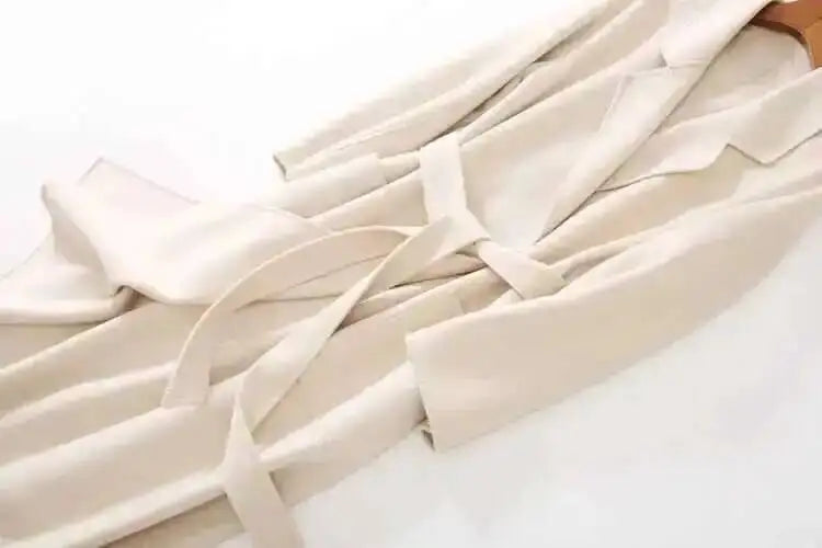 • Bathrobe/Robe Style: The long, "bathrobe style" silhouette is effortlessly chic and popular among high-end brands. It features a large lapel and a matching lace-up belt that cinches the waist for a flattering, elegant, and adjustable fit.