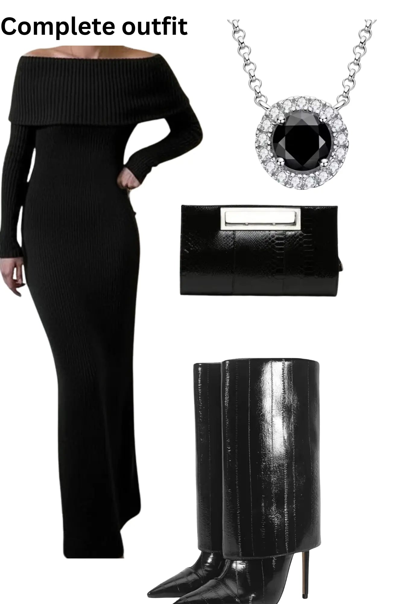 This listing is for the entire outfit (dress, boots, necklace, and clutch).